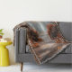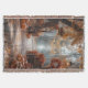 A quality printed throw has its advantages. This is a much finer weave throw than its loopier cousins, and though lighter, it is worth the investment for custom room accessorizing. The back is much prettier than the typical brown, and the fringe on the long sides very vivid, the selvage nicely done. Before photographing, I washed the throw in cold water, delicate, with a thicker woven throw the same size. On tumble dry low, this throw was dry in half the time as the other. This is a very practical quality if you use throws for furniture covers or to wrap up in frequently. The sleekness of the fabric makes it a great layer for accenting or protecting without the feeling of sitting on too much stuff. Perfect for napping or when you feel a light chill coming on. The color printing is beautiful and on this fabric, matched the design and color of my Photoshop image. This is an advantage for blending room fabrics and colors. The fringe on the short sides prints the colors from the design image and therefore varies from the side fringe. I streaked a white fractal line through the plaid pattern to give the illusion of weaving. This printed as crisp as an illusory thread, and put some white in the short side fringe, showing another advantage of print vs loomed- for artistic purposes, line lines, detail, and color integrity can be planned and preserved. My loomed throws have color limitations and more of a needlepoint texture. Print throws reproduce an exact image. The throw felt a little stiff straight out of the package, but this went away in the first delicate wash. Of course I searched the wash water for ink or bleeding and there was none.