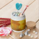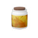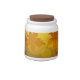 Autumn pattern with falling maple leaves and bokeh candy jar