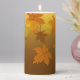 Autumn pattern with falling maple leaves and bokeh pillar candle