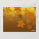 Autumn pattern with falling maple leaves and bokeh postcard