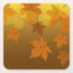 Autumn pattern with falling maple leaves and bokeh square paper coaster