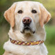 Good quality and fit is perfect for our Treeing Walker Coonhound/Beagle mix - about 45lbs and 15” neck. I wish it was pink all around (why I took off 1 star) but goid quality, printing! See above description - I added the flower to her collar in the photos