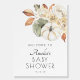 Welcome guests to your shower with this beautiful sign, featuring a pumpkins and autumn foliage. Add the guest of honor's name, shower date and custom welcome text using the fields provided.