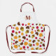 This apron features a colorful autumn harvest pattern with pumpkins, cranberries, acorns, and chestnuts on a white (customizable) background. Personalize it with your name and monogram.