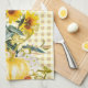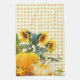 Decorate your end-of-summer and fall-season kitchen with this towel. This kitchen towel features a pumpkin and sunflower design on a yellow and tan color-checked background. Buy a set of towels for yourself or give them as a housewarming or another occasion gift for her.