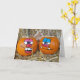 pair of orange autumn pumpkins with painted fun faces for couple's wedding anniversary