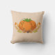 Holiday throw pillow shown with a artful autumn pumpkin print.