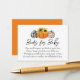 This small enclosure card features three adorable pumpkins in black and white plaid and leopard print accented with pretty yellow sunflowers. "Books for Baby" in a handwritten cursive typography is featured on the front along with a sweet poem. The back of the card is solid pumpkin orange and allows plenty of room to add any additional details or text.