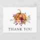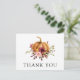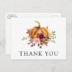 Thank your guests for celebrating! This autumn themed thank you postcard features a watercolor pumpkin with beautiful autumn florals. Personalize with your information or click "Click to customize further" to edit font styles, size and colors. Message on back can be personalized.