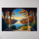 Framed by graceful stone arches, a luminous autumn landscape unfolds in brilliant color and light. Golden foliage glows against a tranquil lake, while radiant sunbeams stretch across the sky and reflect on the water below. The composition draws the eye outward through the archway, creating a sense of depth, warmth, and quiet grandeur. This piece captures the magic of autumn light in a serene and timeless setting.