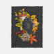 Hand-painted illustratin of a raven and autumn botanicals-leaves, mushrooms and berries