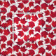 This fabric features a pattern of red autumn maple leaves on a white background. Perfect for autumn themed craft and sewing projects.