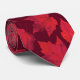This chic tie features a pattern of red autumn maple leaves on a darker red background.