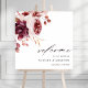 This wedding welcome sign features a watercolor flower bouquet of dahlia, garden rose, peony, and pampas grass in burgundy red, maroon, blush pink over fall leaves. For more advanced customization of this design, please click the BLUE DESIGN TOOL BUTTON. Matching items are also available.