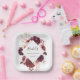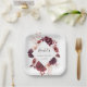This bridal shower paper plate features a watercolor flower wreath of dahlias, garden roses, and peony in burgundy red, maroon, blush pink over fall leaves with a diamond shape frame. For more advanced customization of this design, please click the BLUE DESIGN TOOL BUTTON. Matching items are also available.