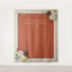 Autumn roses and delicate watercolor greenery leaves on a rich terracotta with a chocolate brown border and tapioca background.