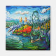 Every September, there's a sense that everything starts and dies all at once: vacations end, school terms and corporate budget cycles start, fruit ripens and is harvested, leaves change and fall. It can be damnably disorienting getting used to the upswitch in tempo after daydreaming through slower sunnier summer days but the change can be invigorating. Suddenly there is a bracing cold on the start and end of your day and things seem a lot more sped up. That's the rush. This scene is all about direction and purposeful intent. It is how you might feel if you were an arrow shot from the North Shore to downtown through Stanley Park. It's about going straight downtown and fighting doubts and bumps and obstacles to get there. The color scheme is primary bright with lots of stop-go-wait red-green-yellow traffic light colors augmented by swirly texture and outlined brush strokes. It is both vivid and immediate, but, as always, the best is yet "around the bend." That's how the world begins.