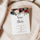This autumn rustic burgundy modern calligraphy wedding save the date is perfect for a simple wedding. The design features burgundy, red, navy, blue and blush radiant and graceful hand-painted flowers, inspiring natural beauty.