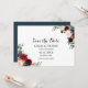 This autumn rustic burgundy wedding save the date invitation is perfect for a simple wedding. The design features burgundy, red, navy, blue and blush radiant and graceful hand-painted flowers, inspiring natural beauty.