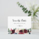 This autumn rustic calligraphy horizontal save the date postcard is perfect for a modern wedding. The design features burgundy, red, navy, blue and blush radiant and graceful hand-painted flowers, inspiring natural beauty.
