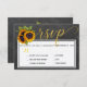Gold calligraphy script wedding RSVP with menu options featuring rustic sunflowers bouquet on dark grey charcoal chalkboard background. Ideal for your summer or autumn fall | elegant rustic country | garden outdoor backyard themed weddings. ------ If you don't need the menu options. just delete the corresponding texts in the spots!