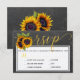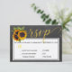 Gold calligraphy script wedding RSVP with menu options featuring rustic sunflowers bouquet on dark grey charcoal chalkboard background. Ideal for your summer or autumn fall | elegant rustic country | garden outdoor backyard themed weddings. ------ If you don't need the menu options. just delete the corresponding texts in the spots!