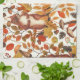Autumn squirrels and autumnal flora on off white kitchen towel