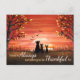 There is Always Something to be Thankful for. Inspirational and motivational saying / quote. Two dogs and cat silhouette watching the sunset on an autumn evening. Bright, vivid orange fall colors. With two trees on both sides with falling autumn leaves and birds flying towards the sunset. Fall scenery with slogan. Original Acrylic Painting Art done by Donna Leger for Irony Designs. All Rights Reserved.