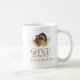 This design features an autumn fall, great for a thanksgiving mug, with a watercolor turkey, a simple rustic, dinner party, great for family dinners or Friendsgiving, with greenery foliage, leaves, and give thanks typography.