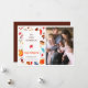 This Thanksgiving photo greeting serves as a birth announcement, as well. It features colorful fall pattern and a vertical photo frame on the front. The text appears in the white box and is very simple and minimal. The backside offers an additional photo frame for a picture of the newborn and custom text for the details of your newborns birth. Photography © Storytree Studios, Stanford, CA