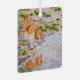 Autumn was beautiful orange and cream colored hen, a salmon faverolle chicken with fluffy cheeks and a laid-back personality. She was observant, often tilting her head when she was curious. The design of these ornaments are from a watercolor I painted of her examining at herself in a pool of rain water.