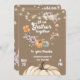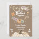 This invitation features a warm, autumn-inspired design with soft earth tones and a charming rustic feel. The text “Let us Gather Together” is prominently displayed in elegant white script, surrounded by delicate fall elements such as pumpkins, flowers, and leaves in muted shades of orange, green, and lavender. Above, string lights gently illuminate the scene, adding a cozy, festive ambiance. The message “To give thanks” follows