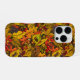 Hand-drawn autumn pattern featuring mushrooms,various berries, fallen leaves and bugs