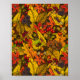 Hand-drawn autumn pattern featuring mushrooms,various berries, fallen leaves and bugs