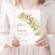 Indulge in sophistication with our refined rustic fall themed Save the Date invitations. Featuring a delicate whimsical wreath of colorful forest tree branches, autumn leaves, berries and dried flowers, these unique invitations elevate the anticipation for your fall wedding. Perfect for adding a touch of elegance and charm to your special day.
