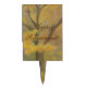 A soft pastel drawing of a tree decked out in glorious autumn gold leaves adorns this customizable cake topper!