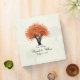 Dancing blooms tree in shades of orange with wedding text design in background.