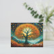 A colorful greeting card with elegant calligraphy "Happy Thanksgiving" text, and a fall tree. The card includes a wonderful greeting message at the back which can be personalized.