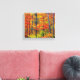 Wrapped canvas art is shown with a photo print of a beautiful autumn trees scene.