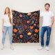 Autumn Warm Orange Flowers Leaves Berries Black Fleece Blanket