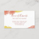 Vibrant business card printed to look as though it's painted with gorgeous watercolors in peachy orange, fiery red, and golden yellow. Your name in a pretty script. The back is white with a few watercolor brushstrokes in matching colors.