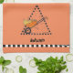 From the 4 Season Collection, the "Autumn" towel features a wheelbarrow filled with pumpkins and fallen leaves.Design sits inside a triangle. Seasonal colors with a black and white checkered border stripe. Background color can be customized.