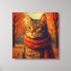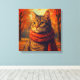Bring autumn charm to your walls with ‘Autumn Whiskers’—a cozy cat in a scarf surrounded by fall leaves, canvas print décor.