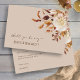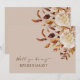 This elegant invitation features beautiful hand-painted watercolor burnt orange and terracotta leaves, cream and beige dahlias, and beautiful rust and brown roses on a taupe background. The back of the card includes text for personalizing. Find matching items in the Taupe Autumn Romance Wedding Collection.