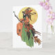 Acrylic painting of an Autumn Witch with her kitty flying past the moon