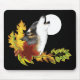 Autumn Wolf Howling Moon Black Mouse Pad