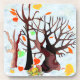 This image is designed as an autumn day with the snow coming down. The trees are losing their leaves and the turkeys are sitting on their vegetables and fruits. These coasters are available in assorted styles and sizes. Makes a great item for the holidays.