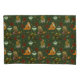 A red fox, rabbit, owl, luna moths, pine marten with autumn leaves, pumpkins, flowers and acorns in a backdrop of deep green
