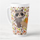 This 17-ounce latte mug features a cozy autumn scene with Reginald the Raccoon and Hazel the Hedgehog busily loading a wheelbarrow with pumpkins, gourds, and apples in front of a background of falling leaves, mushrooms, pinecones, berries, and acorns.