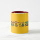 The word Autumn is spelled with cutout letters from a painting I did of colorful autumn leaves. The letters are outlined in a reddish brown color with can coordinate with the handle and inside cup color. The background color of yellow orange, behind the letters, can be customized. The color choice of the inside cup color and handle is selected on the ordering page. Thank you for shopping at CherylsArt on Zazzle.